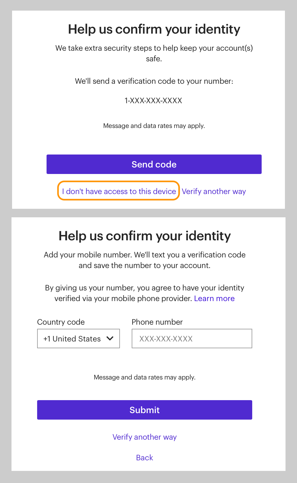 I had a very old account with E*Trade and I wanted to close the account so I'd stop getting dumb emails about my $0 account, but I had no idea what my password was, so I clicked to reset the password and E*Trade said they'd send a verification code to my phone number, except the number on file was a number I haven't had in over 10 years, so I clicked on "I don't have access to this device" and E*Trade was seriously like: