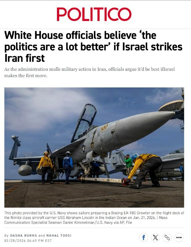 Politico-lehti kertoo, että Donald Trumpin vanhemmat neuvonantajat kallistuvat skenaarioon, jossa #Israel Yhdysvaltojen sijaan käynnistäisi ensimmäisen iskun Irania vastaan. Tämä lähestymistapa perustuu poliittiseen laskelmointiin: jos Israel hyök