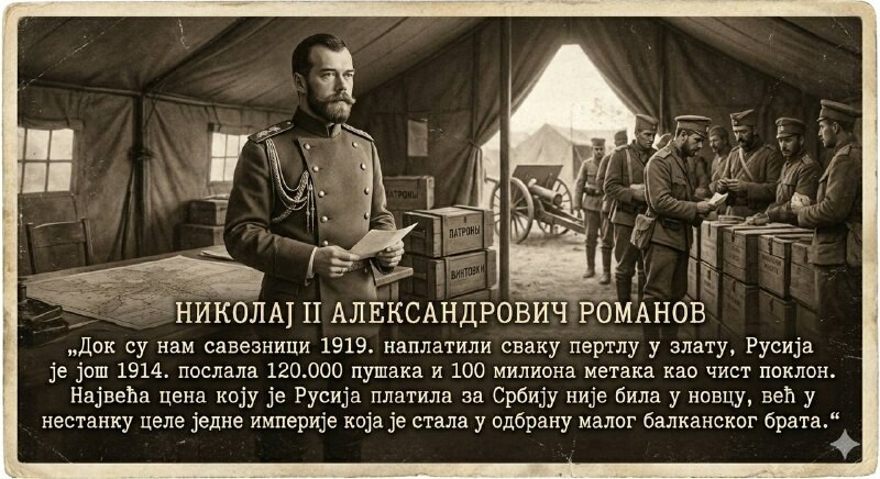 За оне који питају шта су то Руси урадили за нас? Русија je joш 1914. послала 120.000 пушака Мосин-Наган и 100 милиона метака као чист поклон. Иако Русија ово никада није наплатила