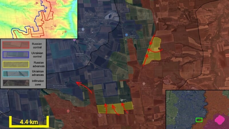 На сектору Добропоља, руске снаге су наставиле своје нападе и постигле су нови напредак у два различита подручја. На југозападу, руске снаге су очистиле украјинске снаге са положаја северно од пута ка Гришину