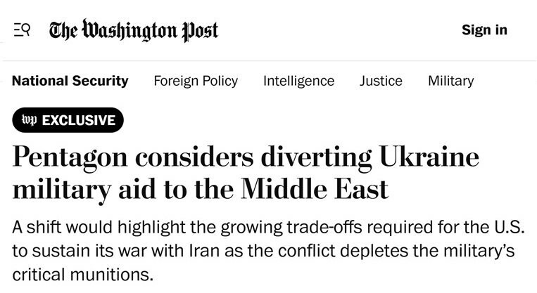 Пентагон планира да преусмери оружје за Украјину на Блиски исток – Вашингтон пост Министарство одбране САД намерава да пошаље на Блиски исток наоружање које је било намењено Украјини, због исцрпљивања сопствених арсенала.