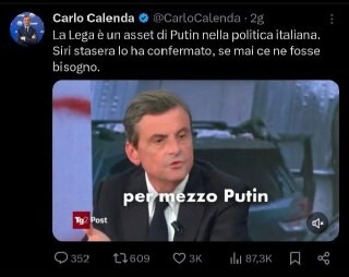 Calenda è COMPLETAMENTE andato di testa, ormai è delirante (non che non ne fossimo già certi dopo il suo tatuaggio) Vede #Putin e putiniani ovunque, pericoli russi dietro ogni angolo Probabilmente anche il termostato di quando abitava con Lapo era una